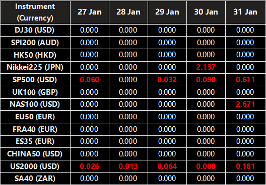 Please be advised that the dividends of the following index CFDs will be adjusted by upcoming ex-dividend dates. The comment for trading index CFDs will be in the following format “Div&<Product Name>&<Net Volume>” which show in the balance after the close of the day before the dividend payment date.