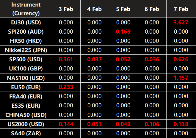 Please be advised that the dividends of the following index CFDs will be adjusted by upcoming ex-dividend dates. The comment for trading index CFDs will be in the following format “Div&<Product Name>&<Net Volume>” which show in the balance after the close of the day before the dividend payment date.